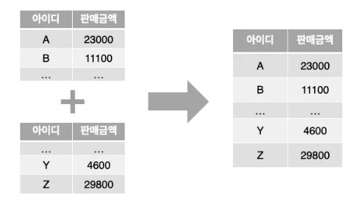 - 테이블을 아래로, 세로로 붙이며 새로운 행을 생성한다.