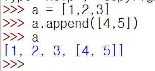 예시1) a.append([4,5])