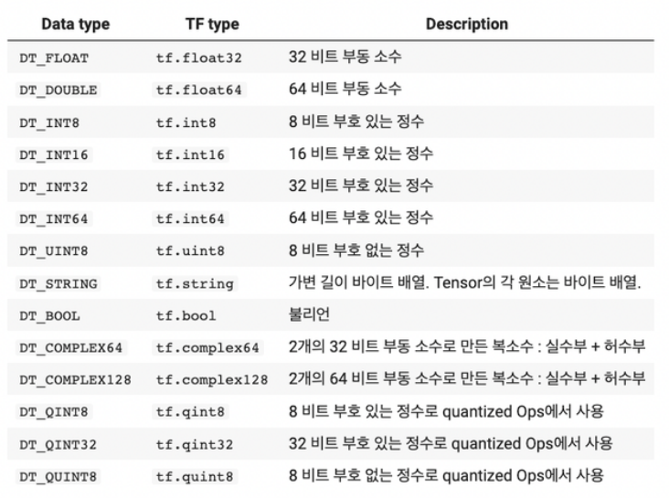 | tf.constant(value) | μ λ ₯κ°μΌλ‘λΆν° TensorFlow ν μ μμ± |